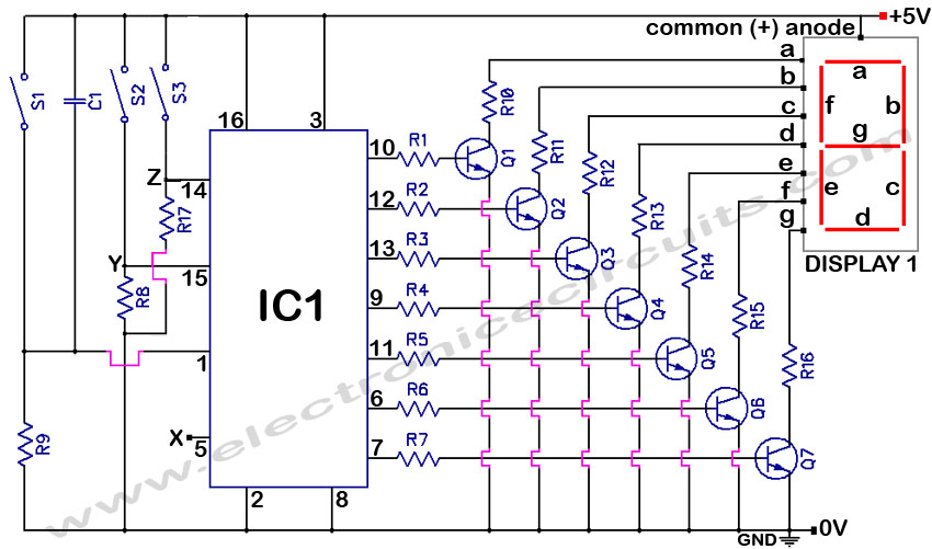 การต่อใช้งานขา enable จะกำหนดเป็น HIGH และขา a-g และ dp จะเป็น LOW |